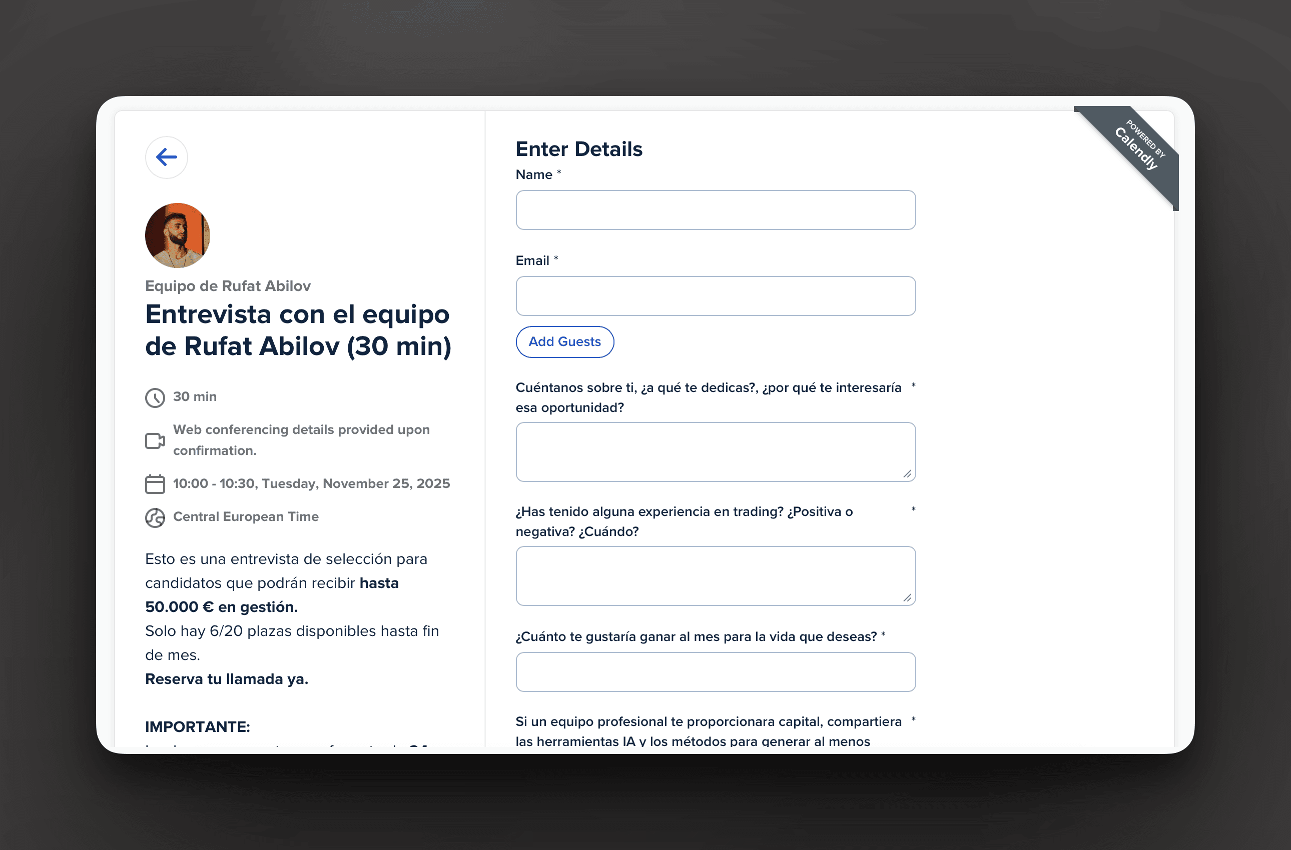 ⚠️ Solo quedan 17 plazas para la conferencia telefónica con Rufat Abilov esta semana.